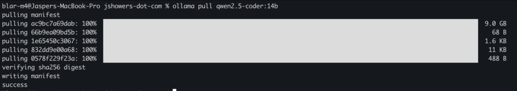 For coding on the M4, you want Qwen 2.5 Coder 14B. It’s a 9GB file, but it hits the “sweet spot” between speed and intelligence. Here are all Qwen 2.5 Coder models.